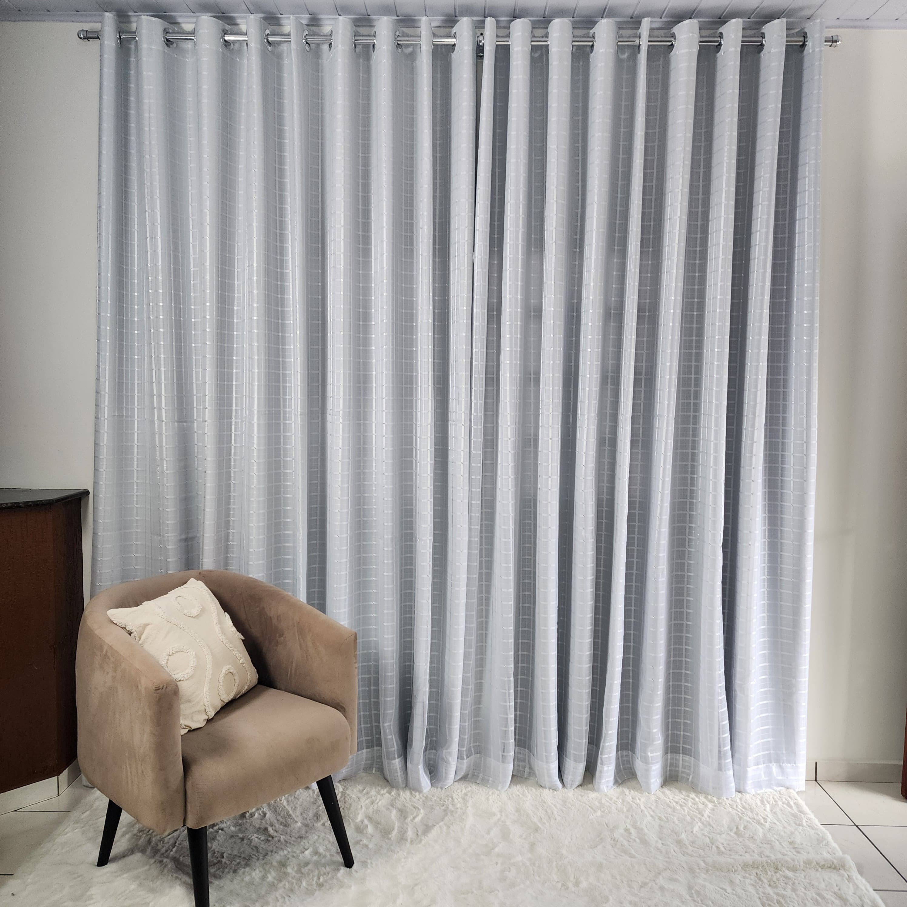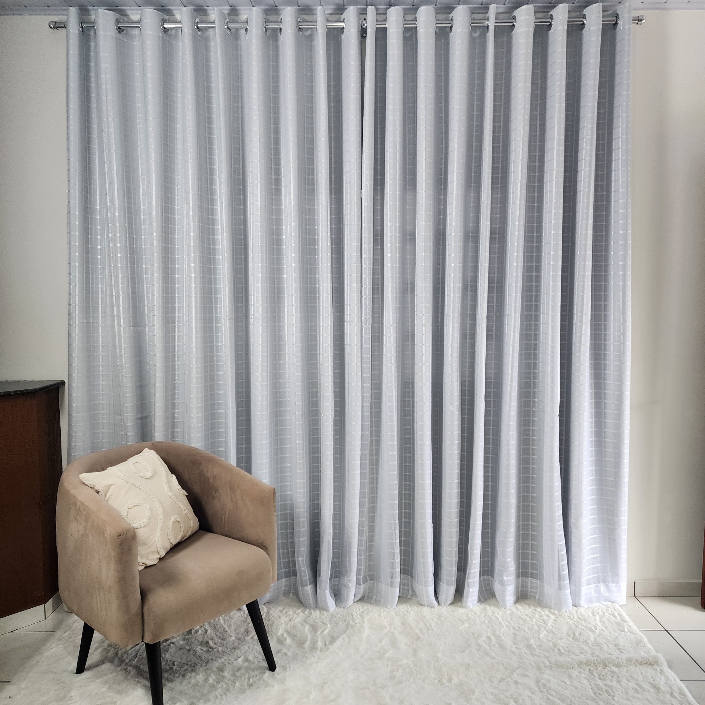 Cortina De Ilhós Blackout + Voil Xadrez - Branco